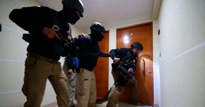 1月9日凌晨,智利调查警察局(PDI)在全国五个大区展开同步行动,包括首都圣地亚哥、伊基克、阿尔托奥斯皮西奥(Alto Hospicio)等地。在首都梅格斯区(Barrio Meiggs)的一次抓捕中,一名中国籍嫌疑人试图从三楼跳窗逃跑,结果坠落一层身受重伤,被紧急送往医院救治。现场执法人员表示,当时情况十分惊险。
