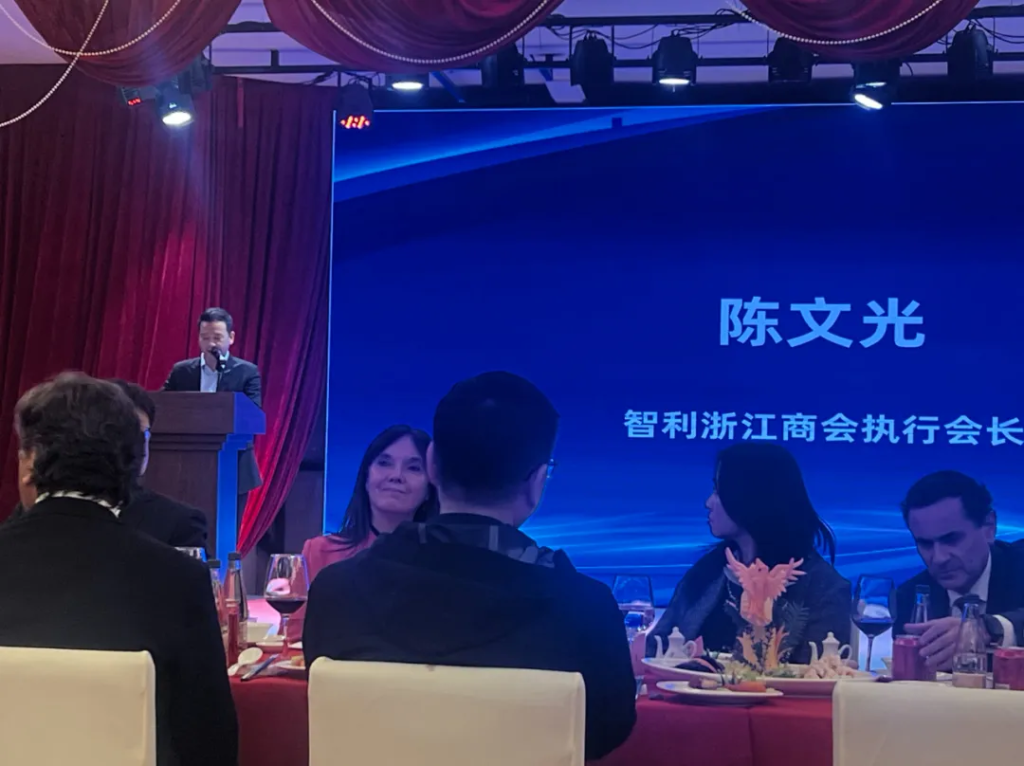 洽谈会圆满结束后,智利浙江商会为远道而来的新疆生产建设兵团代表团精心筹备了一场盛大而隆重的欢迎宴会。智利浙江商会执行会长陈文光先生代表商会,向新疆生产建设兵团代表团表示热烈地欢迎。陈文光先生表示:“我们非常高兴有机会为来自祖国新疆生产建设兵团,协办这次经贸合作推介洽谈会,这次盛会不仅是为了进一步巩固中智两国的友好情谊,更是为了扩大双方在经贸领域的深入合作,展现侨团的团结力量与凝聚力。” 借此契机,智利浙江商会也承诺,将与更多的侨团组织携手并进,紧密关注新疆生产建设兵团的发展动态,为其扩展海外市场、扩大投资贸易范围提供全方位的支持与帮助。 陈文光先生还热情邀请更多的新疆生产建设兵团领导和企业家们来智利考察交流,他表示:“智利浙江商会将继续发挥桥梁和纽带的作用,为双方搭建更多沟通交流的平台,推动中智经贸合作不断迈向新的高度。”