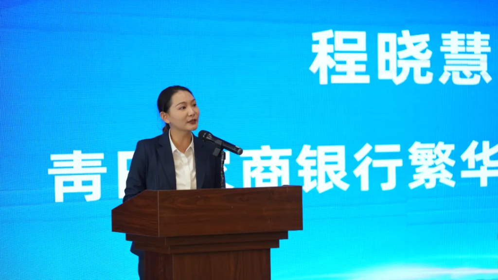 图:青田农商银行繁华支行程晓慧行长在晚宴上致辞