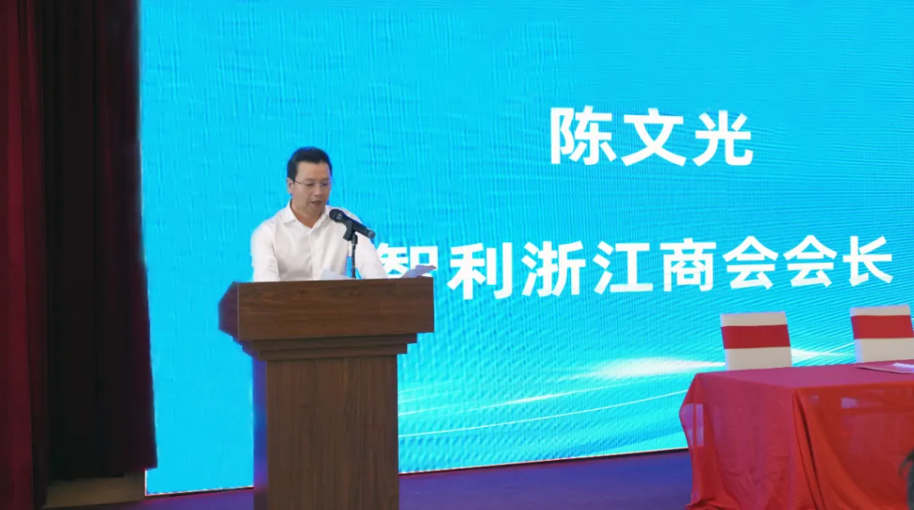 晚宴在热烈温馨的氛围中开始。智利浙江商会陈文光会长在致辞中表示,商会作为本地重要侨界社团,会员企业深耕国际贸易领域,在推动当地经济发展的同时,积极促进中智经贸合作。他指出:”青田农商银行作为’家乡的银行’,始终是浙商开拓国际市场的坚强后盾。程晓慧行长此次率团来访,充分体现了对海外乡亲的关怀和支持。”陈会长强调,此次合作将为在智浙商提供更加精准高效的金融服务。