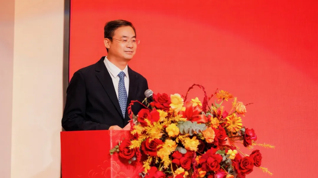 在热烈的掌声中,陈文光会长首先致辞。他表示,商会首次将庆典带回家乡青田举办,既是表达最深切的桑梓之情,也是对家乡的一次深情汇报,更是以实际行动凝聚侨心、汇集侨智、发挥侨力,助力家乡建设与发展。他回顾说,十五年来,在历届会长与全体会员的共同努力下,商会不断发展壮大,已成为智利侨界具有重要影响力的社团之一,曾接待国内多个省市高级别代表团,为促进中智经贸交流作出积极贡献。他强调,侨团发展离不开祖国强盛,今天选择将庆典带回家乡,正是希望将海外积累的资源、视野与经验,与家乡高质量发展的时代机遇紧密结合,为家乡建设贡献侨界力量。